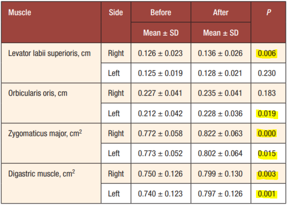 1) 초음파를 이용한 안면근육의 두께 및 단면적