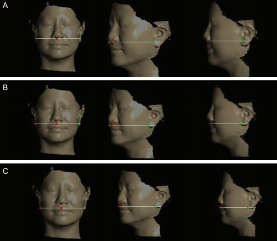 2) 얼굴 스캔을 통한 얼굴 표면 길이, 면적, 볼륨
