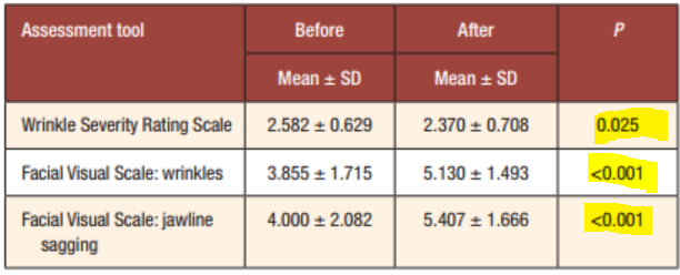4) 주름개선평가척도 개선 증가, 주름 및 턱선처짐 만족도 증가